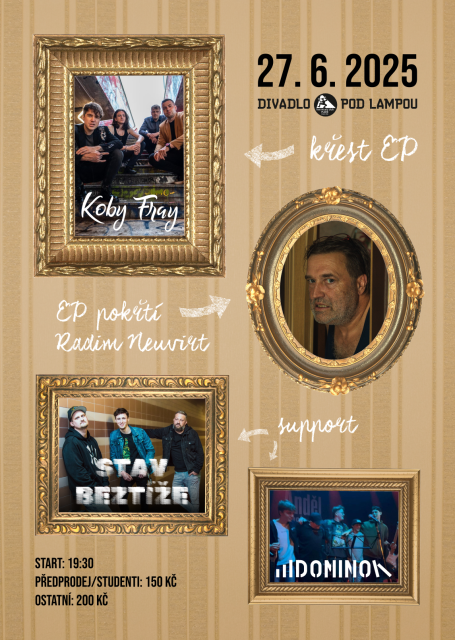 Během večera se dále představí mladá krev plzeňské scény Domino a budějovická naděje Stav beztíže.
